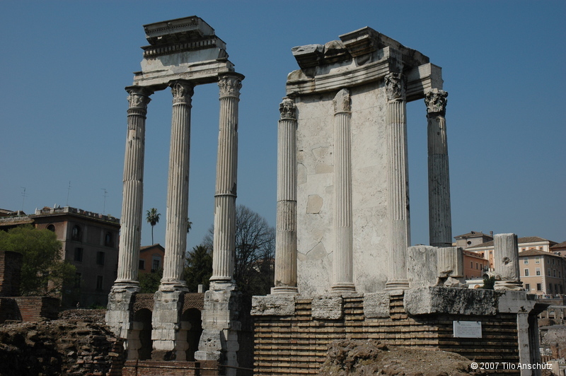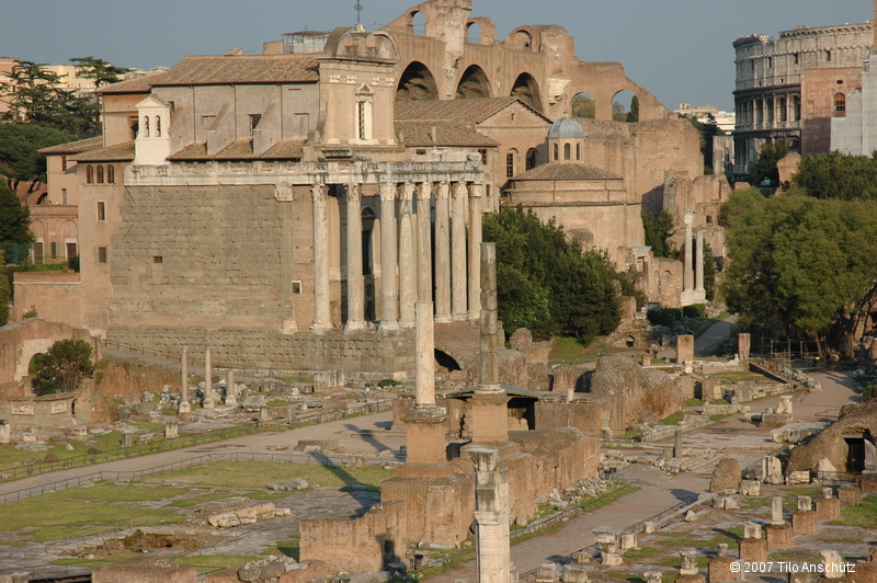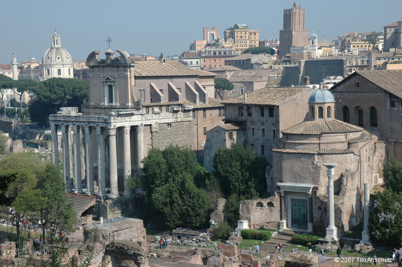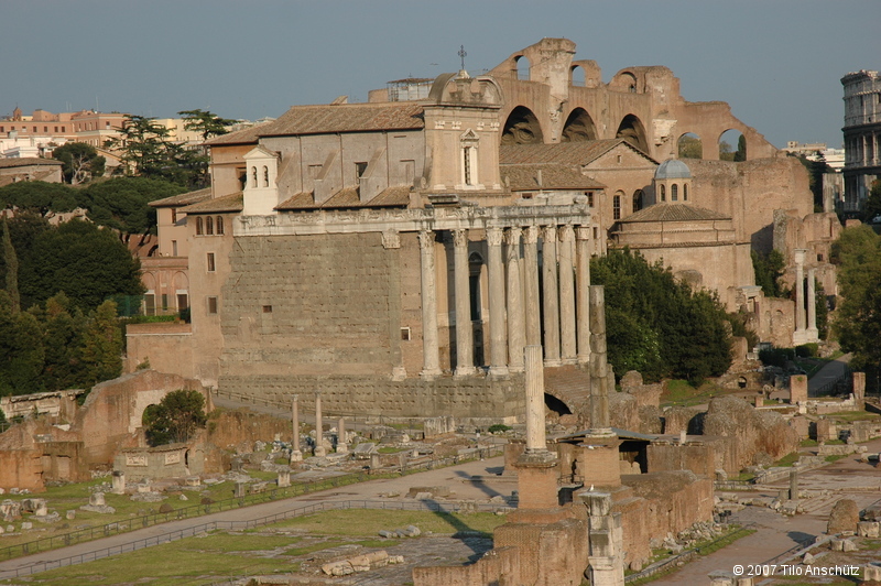 Forum Romanum, Tempel des Antoninus und der Faustina (San Lorenzo in Miranda) und Tempel des Romulus (Santi Cosma e Damiano)