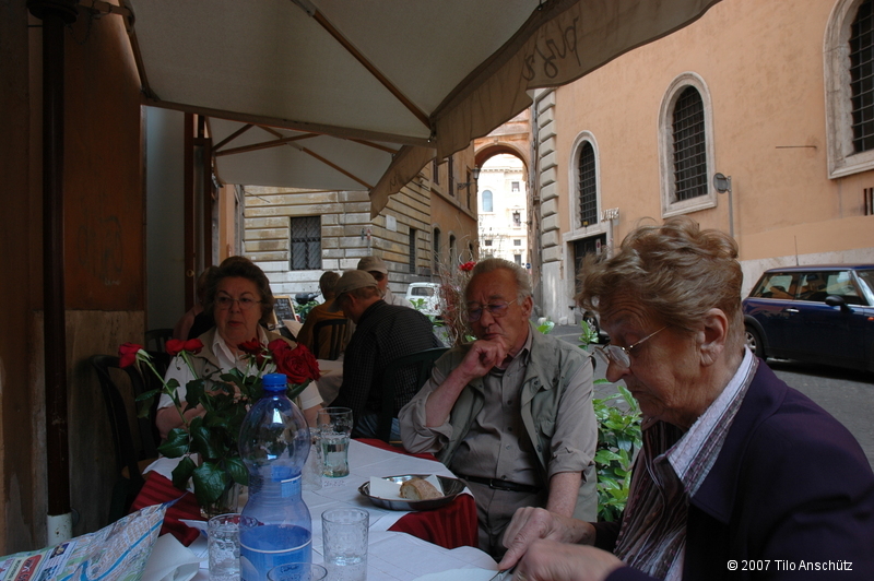 Marga, Horst und Ursel beim Mittagessen in der Nähe der Piazza Venezia